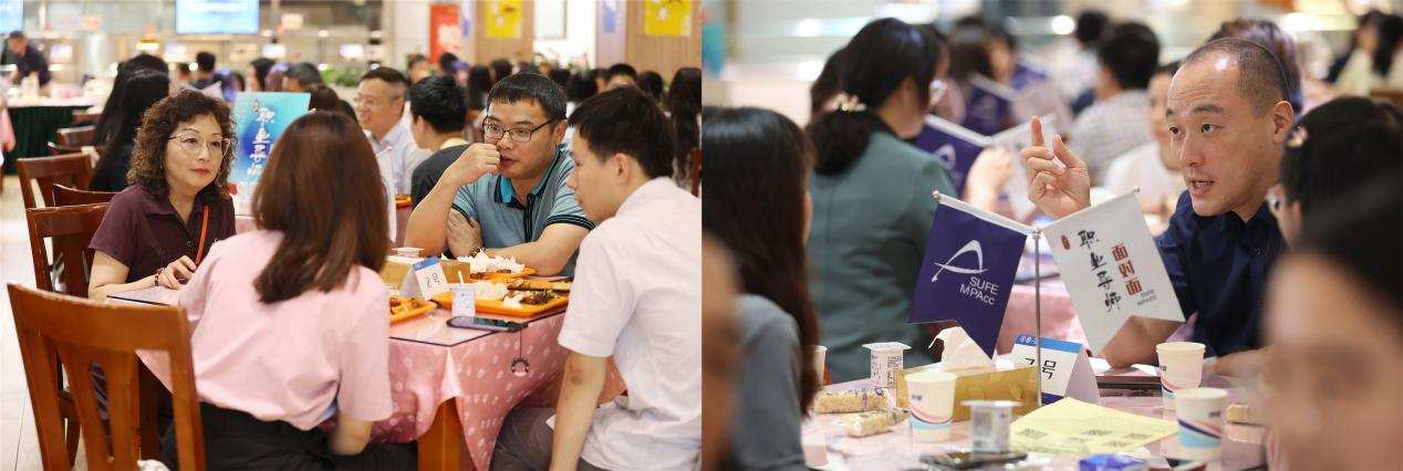 通过MPAcc专业知识抢答、百年党史知识问答等趣味互动,同学们顺利完成了与职业导师的初“破冰”。在轻松愉悦的氛围中,职业导师与同学们共进午餐,大家围绕职业规划、职场发展等方面进行了深入交流。