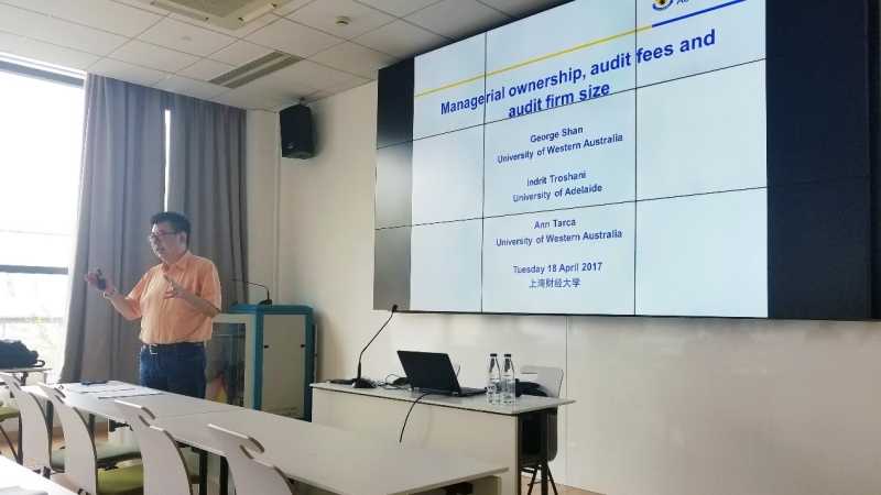 本次学术报告会邀请了来自西澳大利亚大学(The University of Western Australia)的Yuan George Shan教授,报告题目是“Managerial ownership, audit fees and audit firm size”。
