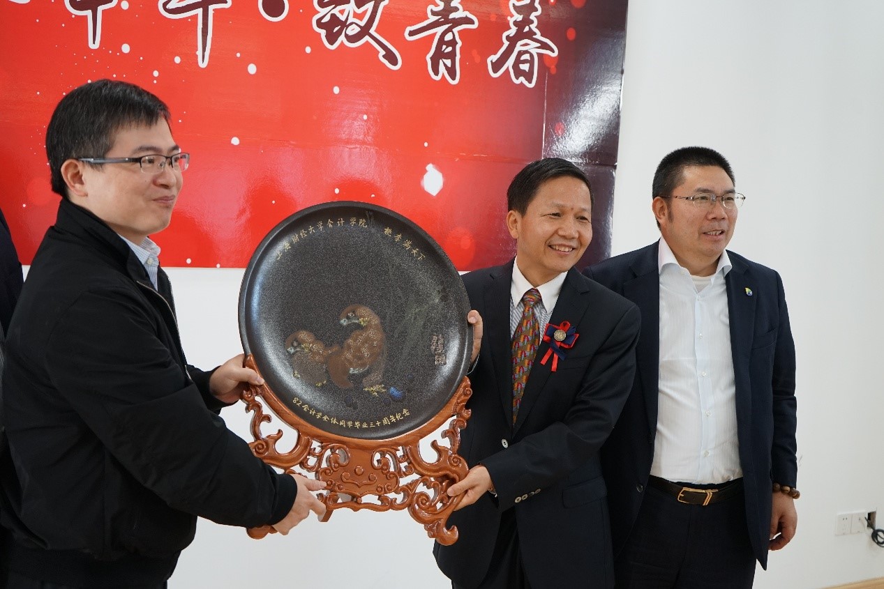 随后校友们向学院赠送纪念品,他们纷纷表示,感谢母校的培养,深深为自己是上财会院人自豪。