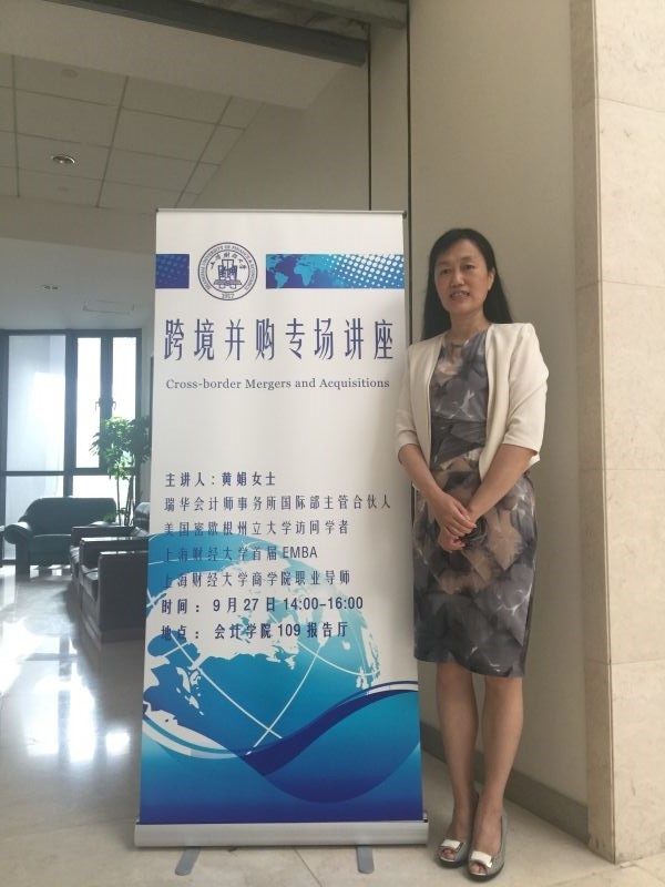 2016年9月27日,瑞华会计师事务所国际部主管合伙人黄娟女士来到上海财经大学会计学院,为同学们开讲题为《中国企业海外并购概览及实务》的课程指引性讲座。