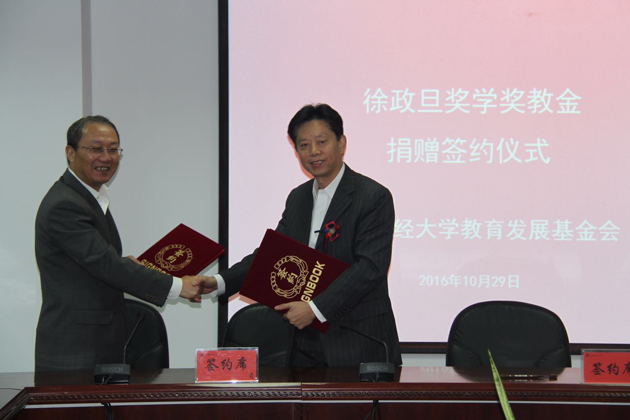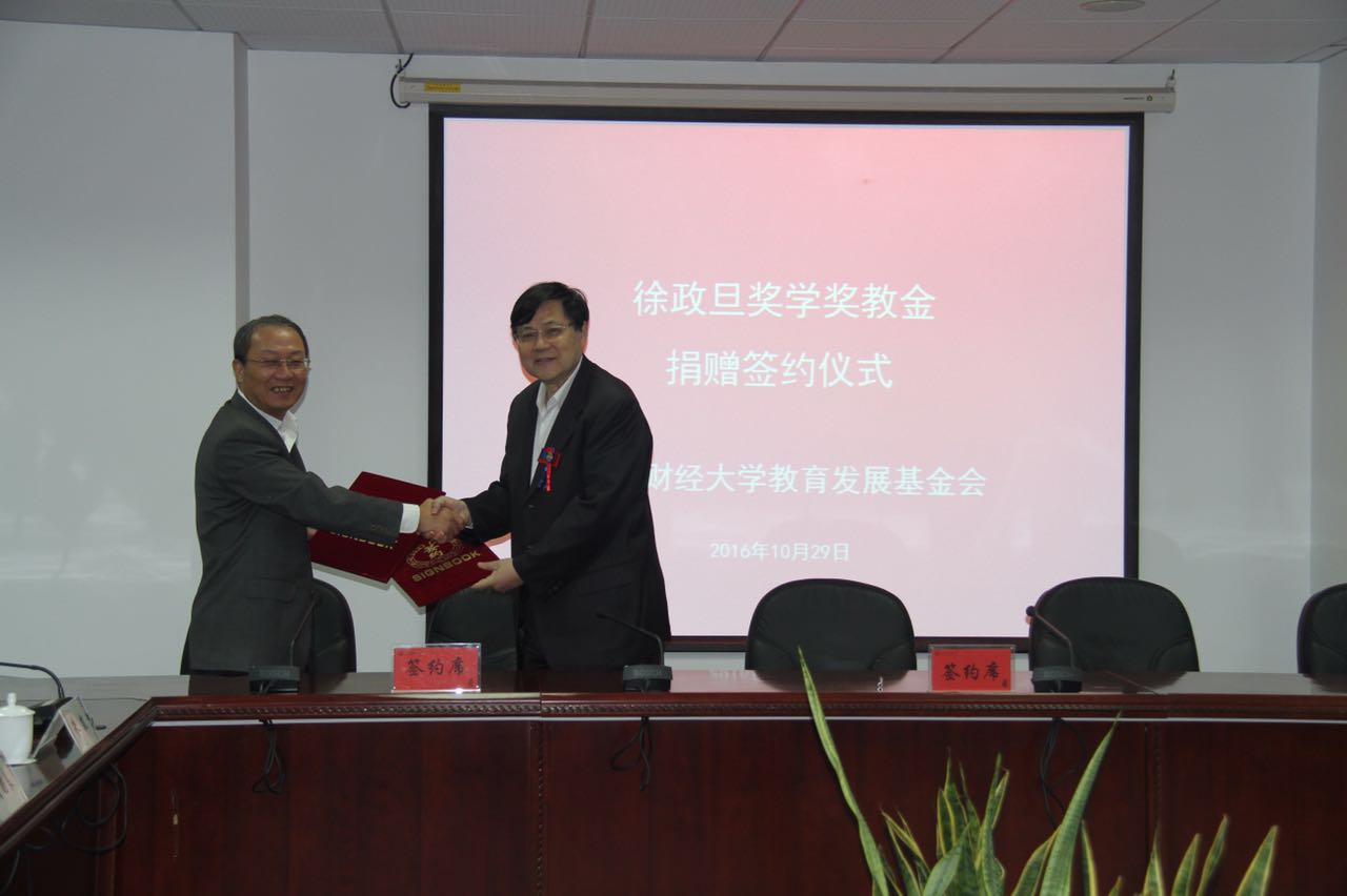 10月29日上午,“徐政旦奖学奖教基金”捐赠签约仪式在行政楼举行。我校校董、大华会计师事务所(深圳)董事长邬建辉、徐政旦教授之子徐德、上海国家会计学院前副院长谢荣、上海新世纪信用评级公司总裁朱荣恩代表全体捐赠人参加仪式。副校长、教育发展基金会理事长方华,会计学院院长李增泉、党委书记周国良、副院长朱凯,合作发展处处长陈红梅、副处长王峰等及部分师生代表出席捐赠仪式。仪式由合作发展处处长陈红梅主持。