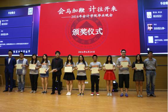 6月24日晚,会计学院“会马加鞭,计往开来”2016届毕业晚会在创业中心报告厅成功举办。会计学院党政领导、教师代表、学生工作辅导员以及2016届本硕博毕业生共计近250人参加了晚会。晚会在毕业生充满回忆、青春激扬的纪念图片中拉开帷幕。