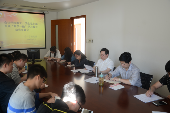 5月12日下午,会计学院党委在学院322会议室举行教工、学生党支部开展“两学一做”学习教育交流会,学院党委书记周国良老师主持会议,学院教工、学生(本、硕、博)党支部书记以及学生工作辅导员等10多人参加了会议。