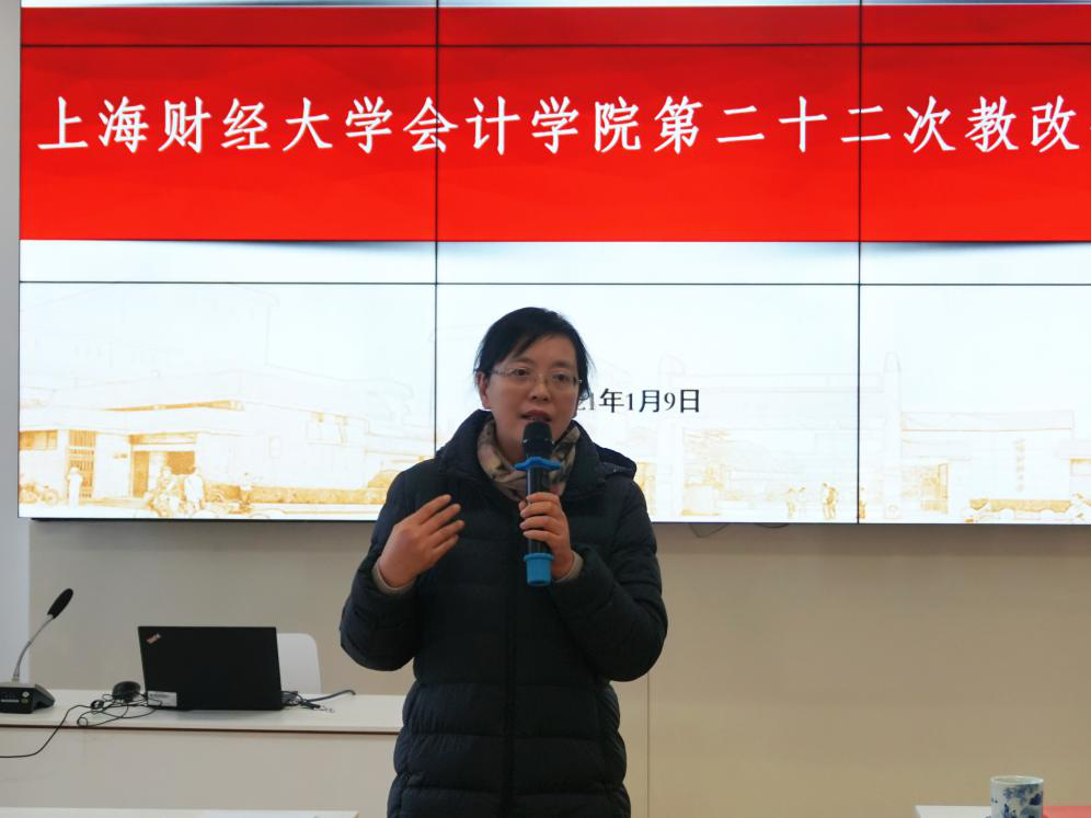 邱雅雯老师首先感谢了学院提供的良好工作环境和氛围,并结合自身的教学和科研经历,表达了自己对财管专业教改方案的关注和对同事们的新年祝福。