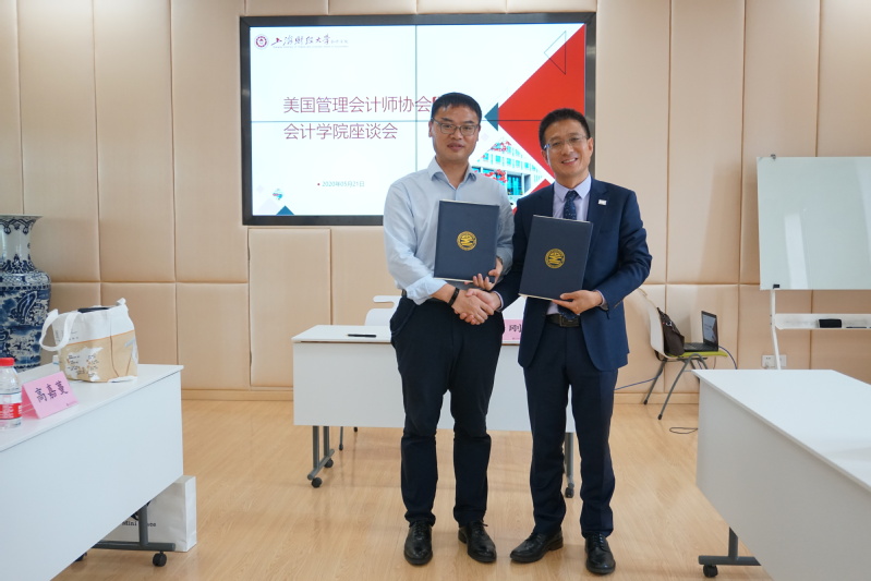 2020年5月21日,上海财经大学会计学院和美国管理会计师协会IMA在会计学院106室正式签署战略合作伙伴备忘录。IMA副总裁兼中国区首席代表李刚、华东区合作发展总监张琳以及知识经理单雨飞,与上海财经大学会计学院院长靳庆鲁、副院长朱凯、教授潘飞以及外事秘书高嘉蔓出席了本次会议及签约仪式。