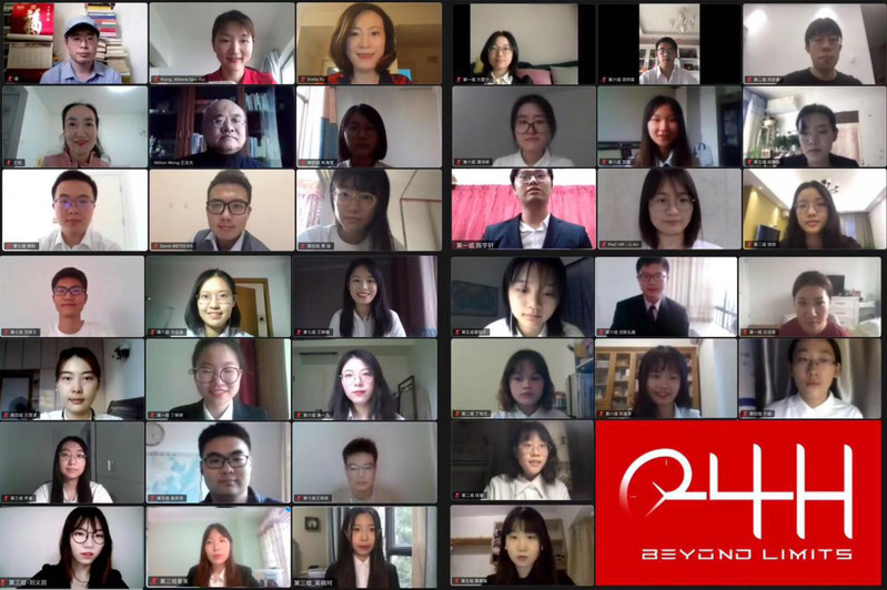 5月24日,2020年普华永道杯“决战24H”商业挑战赛总决赛顺利落下帷幕。本次比赛因时因势,首次采用Zoom平台线上举行。比赛共计收到国内外全球100余所高校的1300多名同学报名,最终共计12所高校的32名选手顺利挺进决赛,角逐冠军。普华永道中天会计师事务所代表上海所税务部门合伙人Stella Fu女士、德勤华永会计师事务所审计与鉴证部副总监王高慧女士、香港会计师公会资深会员王汝光先生、会计学院副教授王悦、侯青川担任本次比赛评委。澳洲会计师公会(CPA Australia)业务拓展部经理钱茵女士、会计学院党委副书记黄莎、上财会计学会指导老师范超超等嘉宾出席了本次活动,100余名校内外同学通过钉钉平台直播观摩了本场比赛。