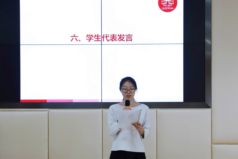 接着学生代表林舒慧同学发言。她首先对捐赠方、校教育发展基金会和会计学院表示了感谢;随后,她回顾了这几年来参与院学生会的经历,也分享了平衡学习和学生工作的经验,她表示希望与更多的学弟学妹分享经验,也希望自己成为服务国家、服务社会的栋梁之才,并在将来用行动回馈社会。