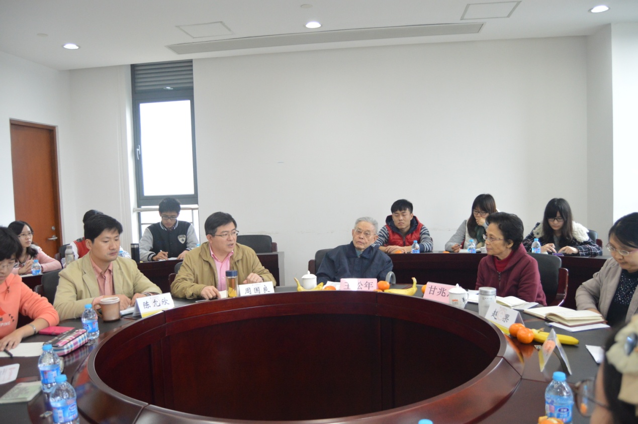 2014年11月25日下午1:30在会计学院大楼213会议室,会计学院关工委新生座谈会顺利举行。学院关工委委员王松年老师、甘兆志老师和会计学院党委副书记周国良老师与3位辅导员,同学院14级15位班长和团支书进行了愉快的交流。