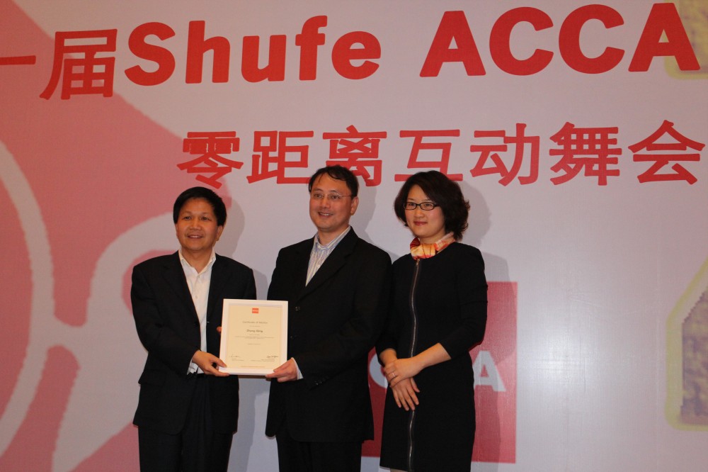 伴随着悠扬的音乐,上海财经大学第一届ACCA嘉年华零距离互动舞会终于在2013年4月14日17:30在财大豪生大酒店拉开了帷幕。出席本场舞会的嘉宾有孙铮副校长、ACCA上海代表处首席代表朱晓云女士、会计学院陈信元院长、唐家乾书记、潘飞副院长、周国良副书记、ACCA的任课老师和辅导员、ACCA上海代表处的嘉宾、 “第一届Mentor计划”的校外ACCA导师;另外除了在校ACCA专业的同学们,已经毕业的校友也积极参与到本次舞会活动中。在孙铮副校长、ACCA上海代表处首席代表朱晓云女士分别致辞后,陈信元院长和唐家乾书记为ACCA导师颁发了证书,周国良副书记宣布舞会正式开始。由20对志愿者组成的开场舞舒缓而优美,渐渐的将舞会推向了高潮。除去优雅的华尔兹和奔放的拉丁,本次舞会的亮点还包括魔术表演,萨克斯表演。可以说这次舞会不仅让平时忙碌的同学们,校友们放松了身心,也拉近了各界ACCA班同学们的距离。舞会的最后,2012级ACCA班男生用江南STYLE舞出了自己的青春和活力,这也宣告了舞会和嘉年华的圆满落幕。