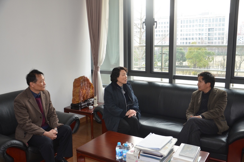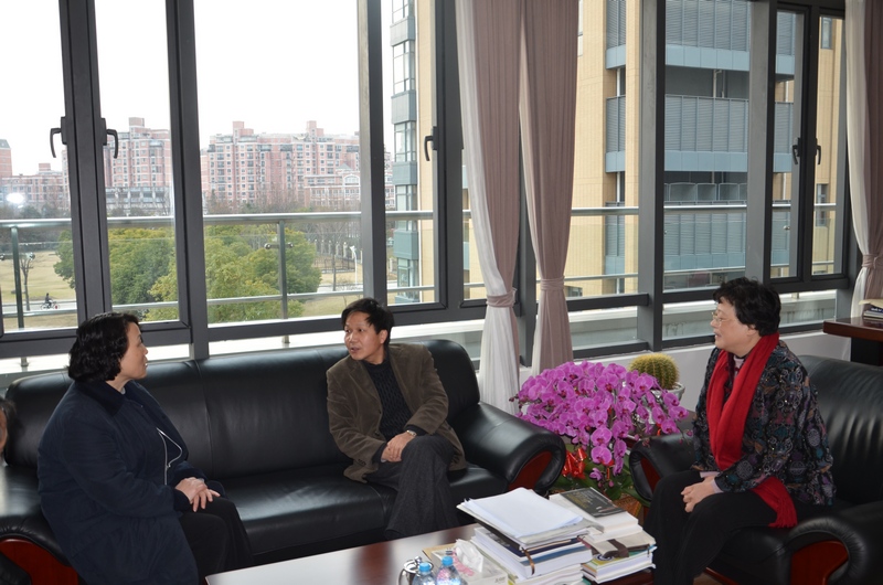春节期间,上海市教委党委副书记杜慧芳、上海教育工会主席夏玲英、校党委副书记陈宏看望劳模陈信元教授。