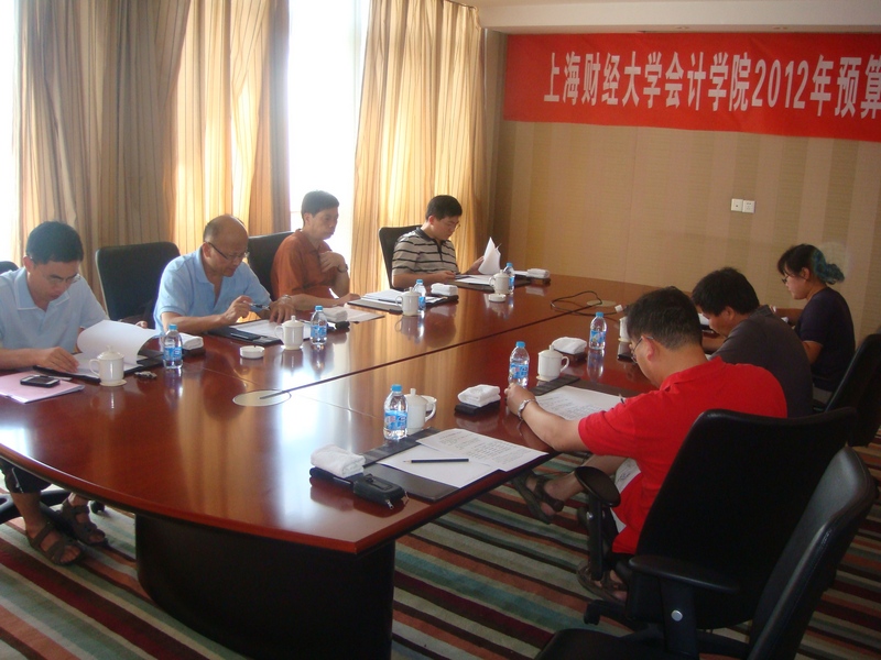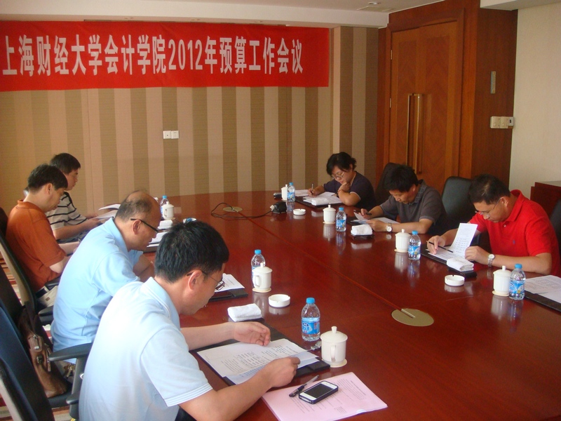 2012年7月底会计学院召开2012年预算工作会议。参加会议的人员有:陈信元院长、党委唐家乾书记、潘飞副院长、李增泉副院长、朱红军副院长、MPAcc中心周国良主任、院办陈晓东主任、学生事务办公室黄莎主任。会上潘飞副院长通报了2012年上半年学院预算执行情况,并提出了2013年学院预算设想。与会者就2013年学院预算以及MPAcc财务管理制度等事项逐项进行了讨论。此外,还专项重点讨论了“2011计划”申报工作,并对此议题达成了共识。