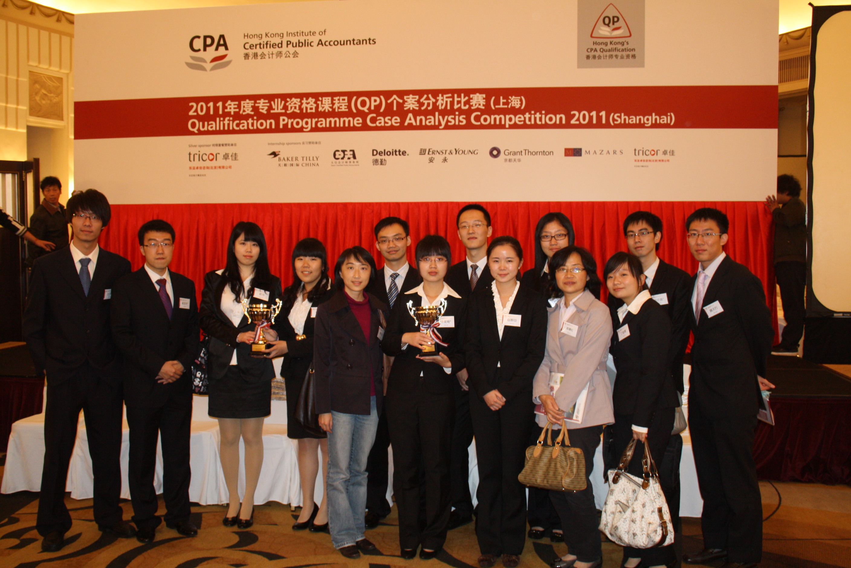 2011年11月19日,香港会计师公会2011年度专业资格课程(QP)个案分析比赛上海赛区决赛在上海花园饭店百花厅举行。我校共有50支队伍报名参赛,3支队伍闯进了现场决赛的八强,他们与来自复旦大学、上海交通大学、中南财经大学以及北师大香港浸会大学联合国际学院的代表队一起角逐上海赛区冠军。