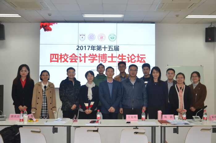 2017年11月11日,由上海财经大学、清华大学、南京大学和中山大学联合主办的第十五届四校会计学博士论坛在上海财经大学会计学院举行。清华大学罗婷教授,南京大学徐亮教授,中山大学王克明教授,上海财经大学靳庆鲁教授、周波副教授等老师以及来自四校的多位博士生参加了本次论坛。