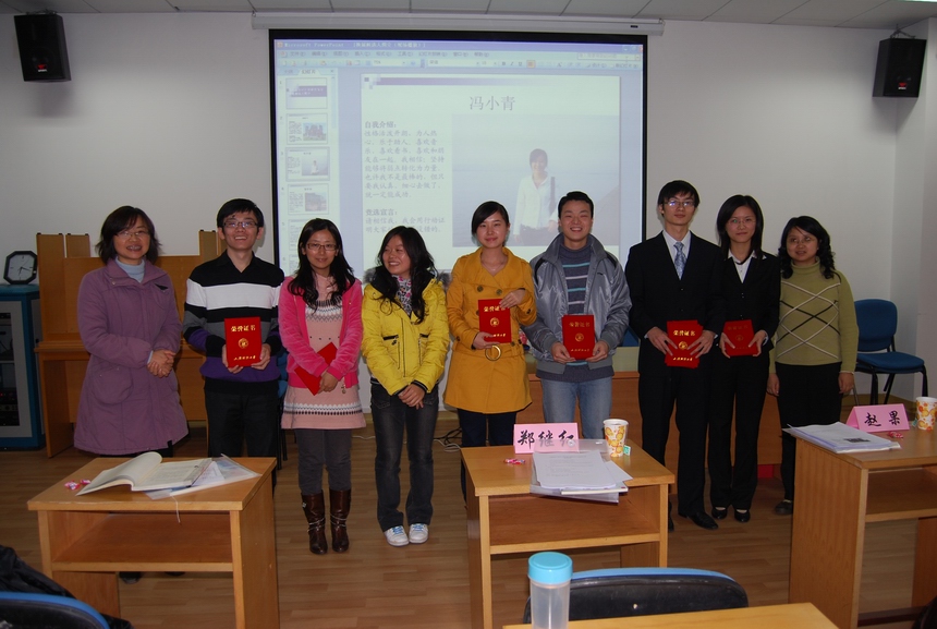 11月24日晚上6点,会计学院研究生会在会计学院新大楼108室举办换届选举大会。学院党委副书记郑继红老师、研究生辅导员赵果老师和60多名研究生应邀出席了此次大会。 会议首先由第六届研会主席魏华斌同学做述职报告,回顾过去一年来研究生会的工作。然后,由郑继红老师与赵果老师为第六届研会的成员颁发奖状,感谢他们一年来的辛勤工作。接下来,郑继红老师致辞,肯定了第六届研究生会的工作,并对新一届研会寄予了期望。第四个部分是此次换届大会最精彩的部分——十八位候选人依次上台发表三分钟的竞选演讲。在演讲中,他们或展开对研会今后工作的设想,或展示自身独特的才能与技巧,用激情的语言感染现场的同学。演讲完毕,候选人与现场同学还展开了良好的互动答问。最后,杨帆等10位研究生脱颖而出,成为新一届会计学院研究生会的成员。会后,赵果老师根据每人的实际情况进行了分工,并期待新一届研究生会在秉承过去传统的基础上,努力进行活动形式的创新,为研究生的生活增添更多的快乐!(会计学院研会 黄圆圆)