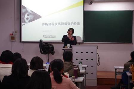 安永是全球领先的审计、税务、财务交易和咨询服务机构,国际四大会计师事务所之一,全美第二大会计师事务所,在会计业界享有盛誉。安永派出多达10人的合伙人团队,经与学院负责老师刘华副教授反复协商,精心策划和讲授了五个专题内容,包括风险导向审计(尤飞讲授)、舞弊审查(蔡宜哲、李琛琛、马云超讲授)、尽职调查与企业估值(袁皈泰、陈静讲授)、中国企业上市以及财务准备(汤哲辉、陈颖、胡玮讲授)、企业内部控制(吴晓颖讲授)。安永的合伙人团队内容准备充分,授课态度认真,讲解过程精彩,现场反响热烈,体现了卓越的国际视野、专家见解和职业素养。尤为值得称道的是,安永通过提供实践教学案例,使课堂教学贴近实际工作,有效增强了实操性,帮助学生完善课堂之外的在职认知并提高专业水准。