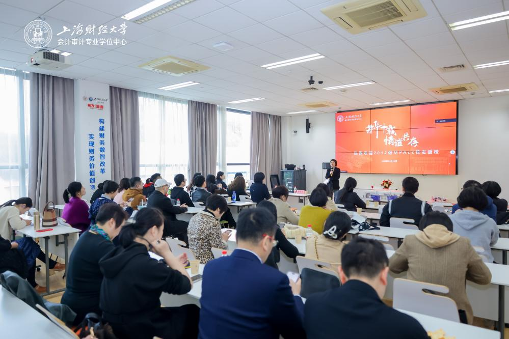 2024年11月24日,上海财经大学2012级MPAcc校友毕业十周年返校活动在会计学院楼隆重举行。五十余位校友及其家属齐聚母校,时任2012级会计学院院长陈信元、党委书记唐家乾、导师代表尤家荣、刘华,会计学院党委书记郑继红、副院长曾庆生、行政办公室主任兼会计审计专业学位中心副主任潘雪和中心教师共同参加活动。活动由2012级班委刘月英主持。