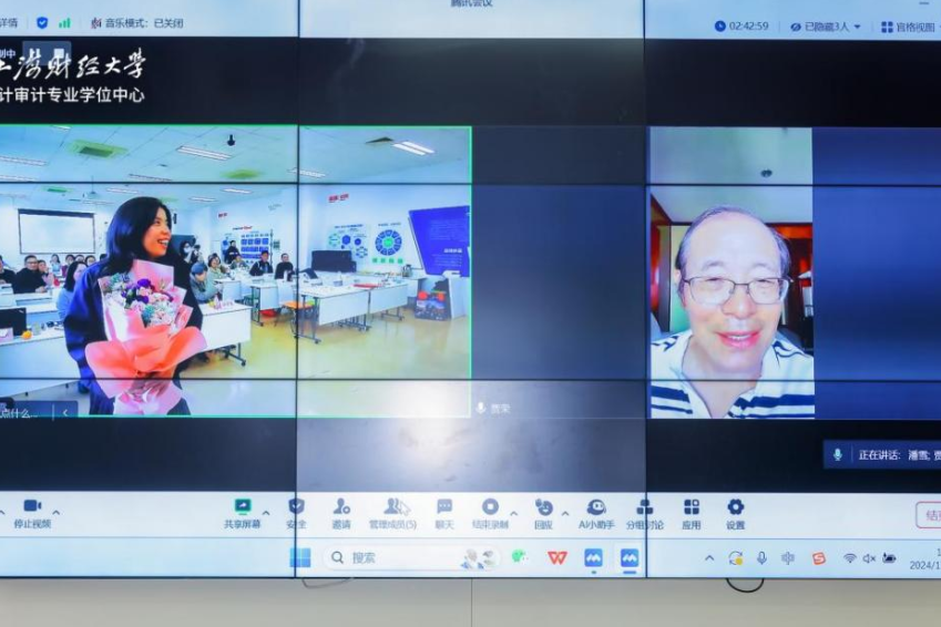 下午,身在世界各地的校友们在会计学院108室通过连线方式,共忆往昔同窗情谊,畅谈如今蓬勃发展。