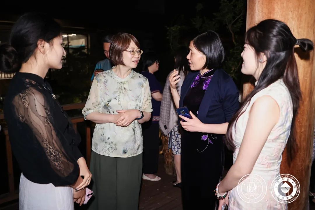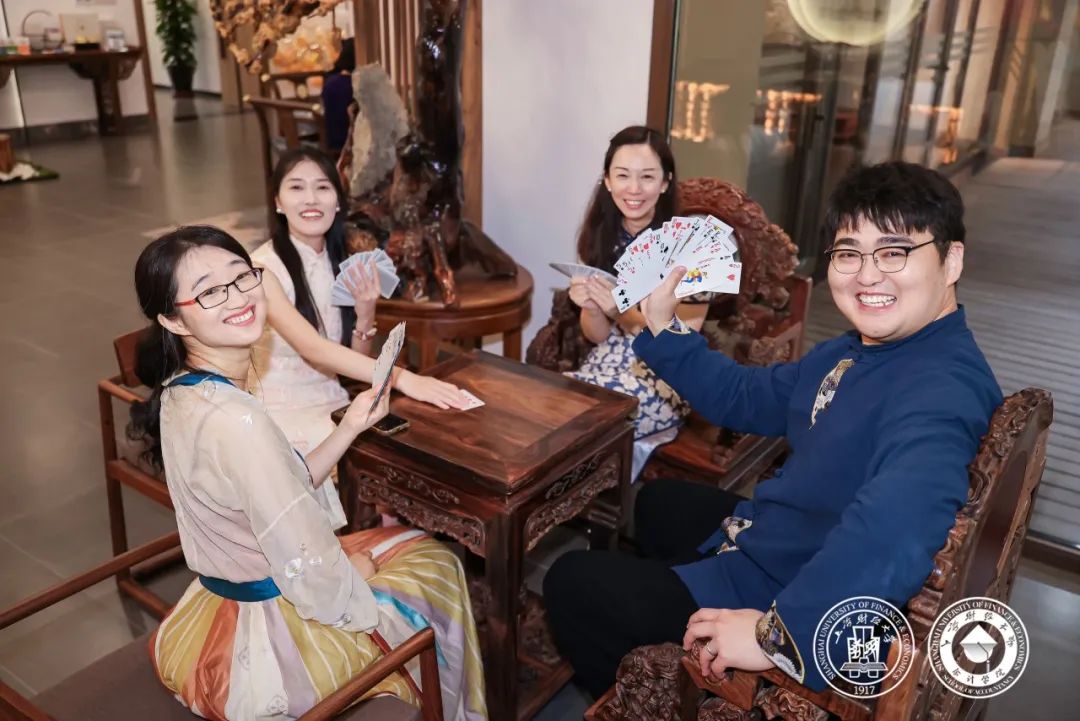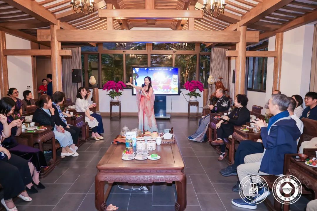 在轻松愉快的氛围中,活动进入了自由活动时间。青砖黛瓦映衬着翠竹婆娑,古朴小径横卧在池塘之上,校友们在精心布置的中式庭院中,有的围炉品茗,畅谈美好的诗与远方;有的穿梭于中式建筑,捕捉美好的瞬间;还有的参与各种趣味游戏,欢声笑语此起彼伏,每个人的脸上都洋溢着幸福的笑容。
