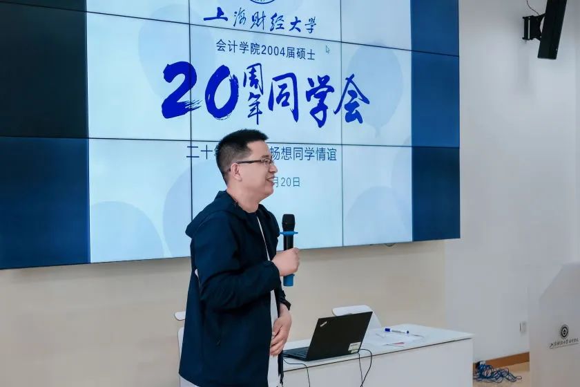 随后,现任上海财经大学会计学院教授的黄俊校友、上海国家会计学院教授的刘凤委校友、申万菱信基金基金经理的付娟校友、海南并作观复私募基金管理合伙企业合伙人的周立恒校友、上海建工集团副总会计师沈广军校友、河北工程大学管理工程与商学院副教授的吴志刚校友、中化资产管理有限公司财务总监的李鹏程校友及其家属、现定居澳洲的王新妹校友、华西证券研究所质量审核分析师的林起联校友先后进行了发言。校友们分享了多年来各自的职业发展与人生经历,并追忆了那段青春洋溢、充满激情的求学岁月,纷纷表示阔别二十年,如今再次回归校园,与昔日携手共进、相互扶持的同学们相聚,心中充满了自豪与喜悦。衷心感谢母校的培养,由衷祝福学校与学院蓬勃发展,越来越好!