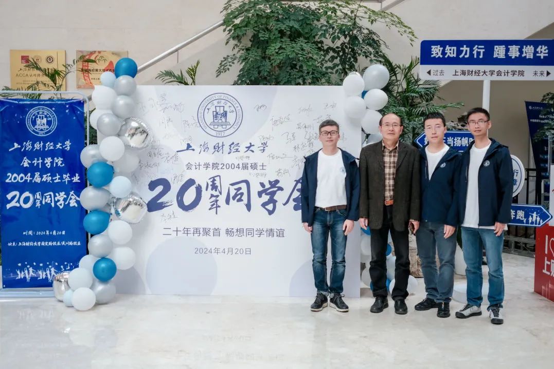 廿载风华再聚首,故地情深意更浓。2024年4月20日,上海财经大学会计学院举办2004届硕士校友毕业二十周年返校活动,60余位校友欢聚一堂,共忆往昔求学岁月,重温同窗情深意长。上海财经大学副校长李增泉,会计学院退休老教授蒋义宏、尤家荣,会计学院党委书记郑继红、副院长周波、党委副书记黄莎、校友事务主管高嘉蔓出席活动。活动由会计学院2004届研究生校友王志伟、吴承刚主持。