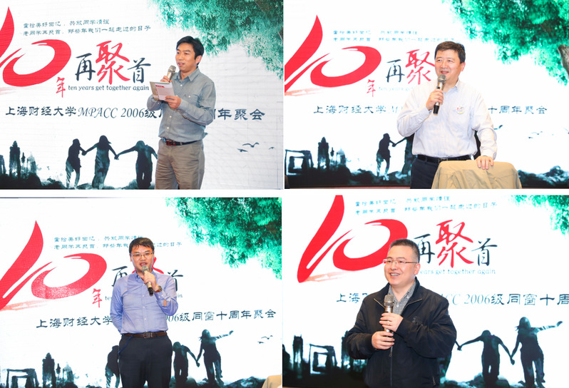 再上一堂课结束后,学院近20位老师参加了“十年再聚首”交流会。交流会由郑照校友主持,上海财经大学学术委员会主任孙铮,会计学院党委书记周国良,副院长靳庆鲁分别讲话,对校友的返校表示热烈欢迎,同时为校友们十年来取得的飞速成长和对祖国的杰出贡献感到由衷的骄傲和自豪。师生们一起观看了当年的照片和视频,每一个镜头都触动着在场校友心底最美好的回忆。