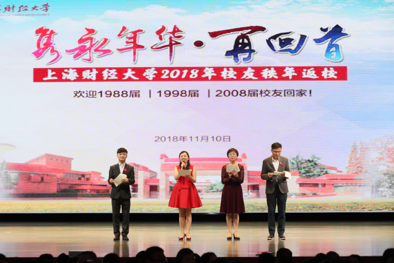 2018年11月10日,“隽永年华·再回首”上海财经大学2018年校友秩年返校活动于国定路艺术中心隆重举行。上海财经大学会计学院MPAcc 2006级(2008届)90余位校友从世界各地不远千里齐聚母校,共庆母校101周年华诞。重逢欢聚的喜悦给上财增添了一抹别样的温情。大合影留念后,2018年秩年返校大会隆重开幕,蒋玲校友作为主持人之一闪亮登场,会计学院MPAcc2006级1班表演诗朗诵《我的南方和北方》,校友们通过优美的诗句诉说着大江南北的中华儿女对祖国深深的热爱和眷念,隽永年华再回首,不悔情真,不负师恩,上财儿女虽来自大江南北,腾飞于五湖四海,但母校永远是他们内心深处牵挂的家。