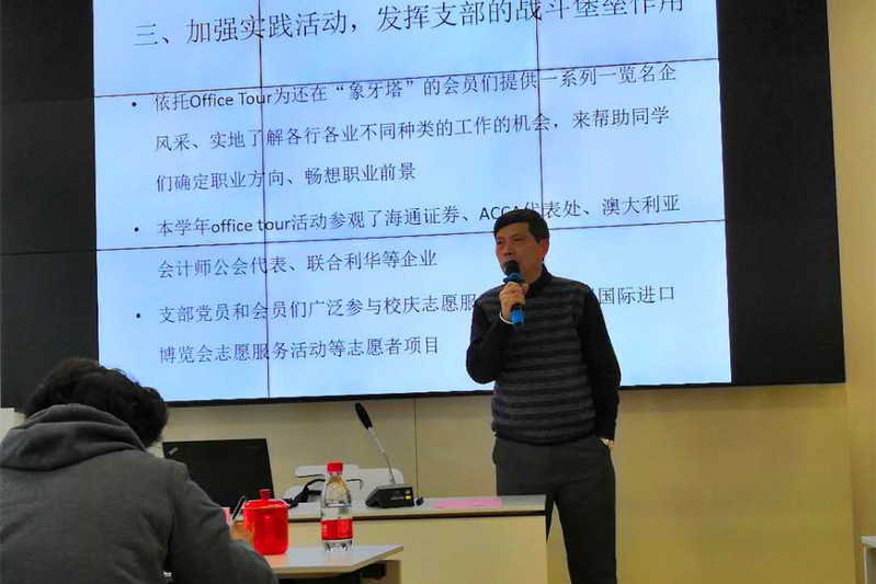 12月18日下午14:00,由学院学生助理团主办的“两学一做”学生党支部组织生活展示活动在会计学院108教室顺利举办。会计学院党委书记周国良、学院党委副书记黄莎、学院专职组织员唐家乾、学院关工委甘兆志和尤家荣、学院学生办主任赵果和全院30多名学生党员代表以及支委成员共同出席会议。
