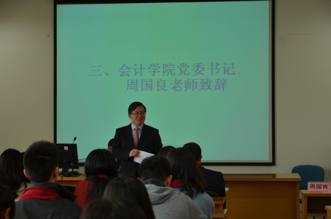 接下来,周国良书记为校友们重点介绍了会计学院目前的校友工作进展情况,并希望同学们常回母校看看,支持校友工作的发展,特别是明年校庆100周年,邀请大家返校参与。