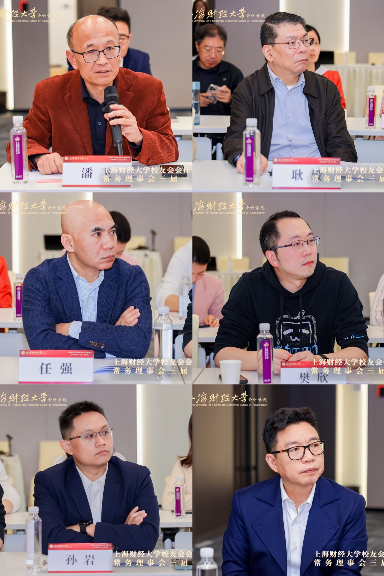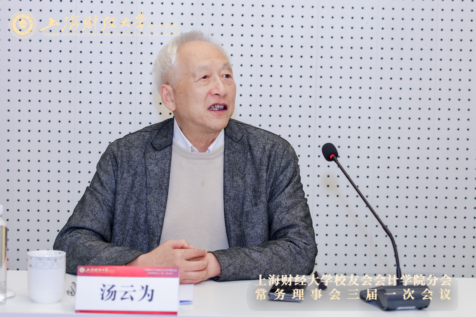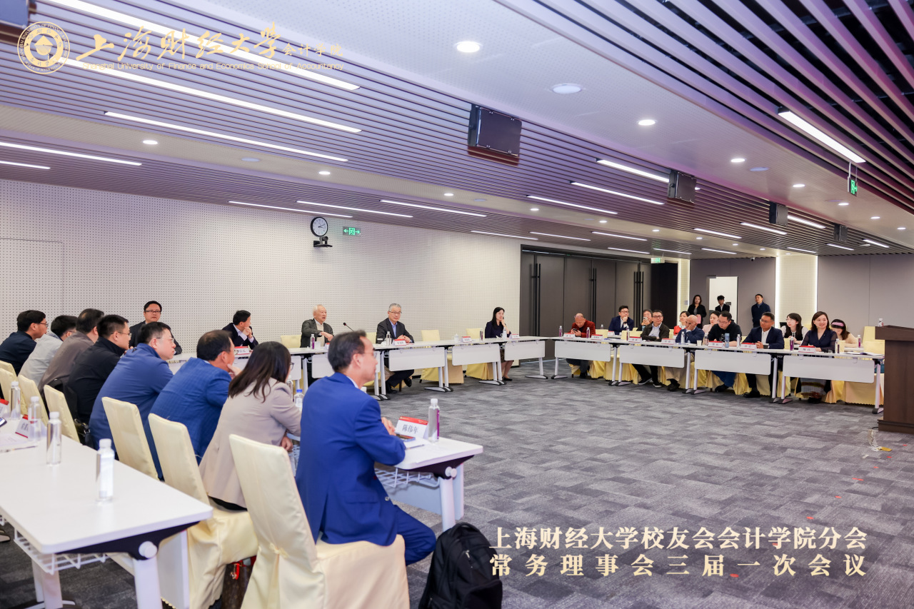 2024年4月21日,上海财经大学校友会会计学院分会(以下简称“会计学院分会”)常务理事会三届一次会议在上海财经大学滴水湖高级金融学院隆重召开。上海财经大学副校长、滴水湖高级金融学院党总支书记陈信元,会计学院分会名誉会长、原上海财经大学校长汤云为,会计学院分会名誉会长、中国证监会前首席会计师张为国,会计学院分会主要负责人及常务理事三十余人出席会议。上海财经大学滴水湖高级金融学院执行院长陈选娟受邀参会。会议由会计学院分会秘书长鞠玮主持。