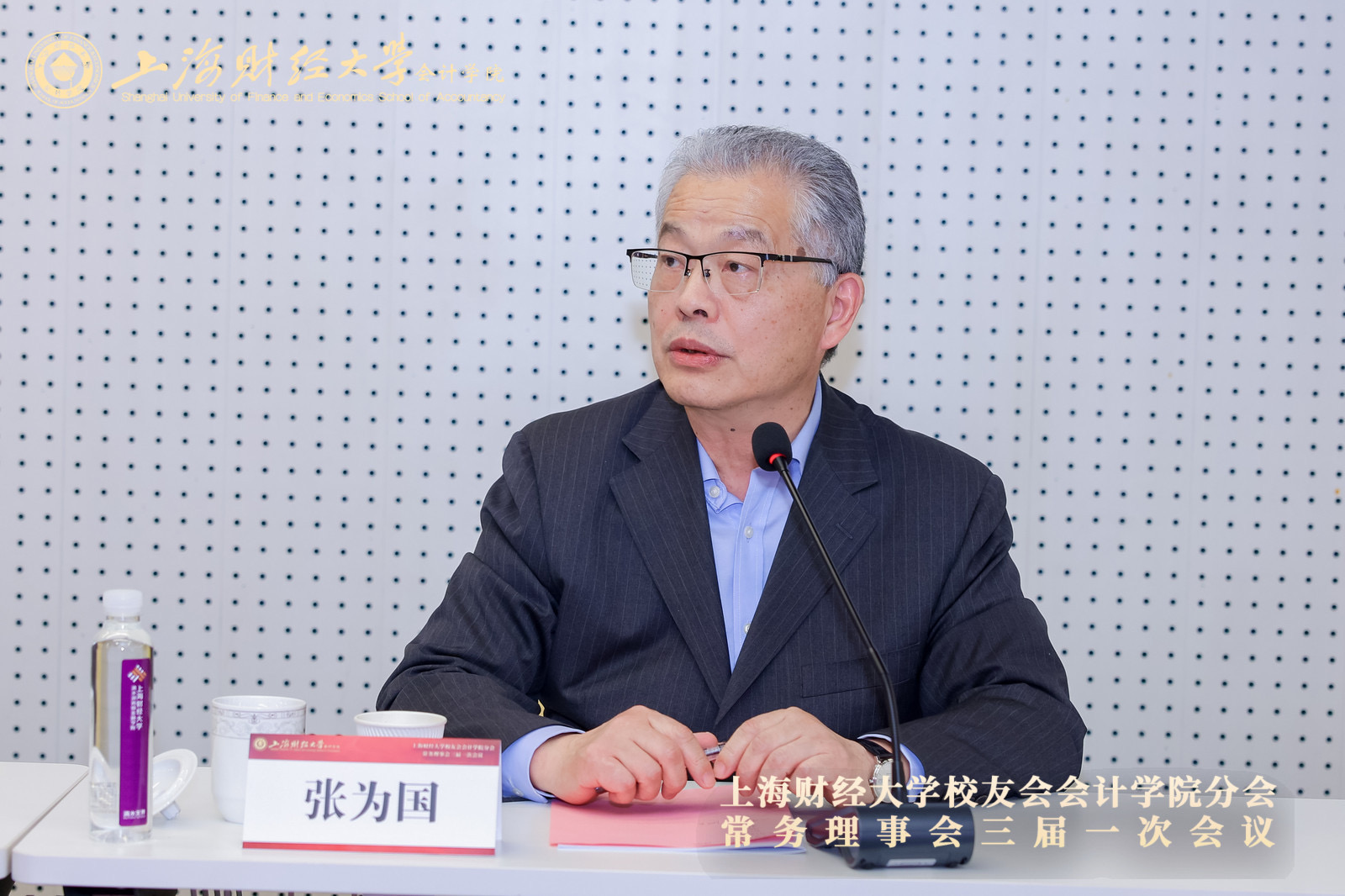 会计学院分会名誉会长张为国教授在致辞中谈到,一直以来,一代又一代的上财会院人,树立了较强的忧患意识、创新意识、精品意识与团结意识,奠定了会计学院发展的扎实基础,形成了会计学院特有的精神谱系,他表示对会计学院未来发展充满信心,并勉励大家踔厉奋发,笃实前行,再创辉煌!