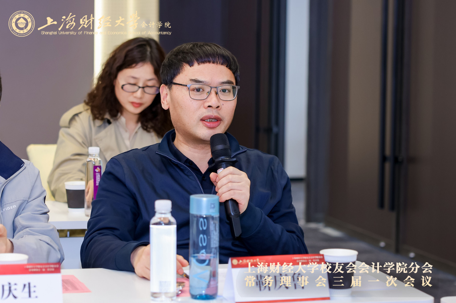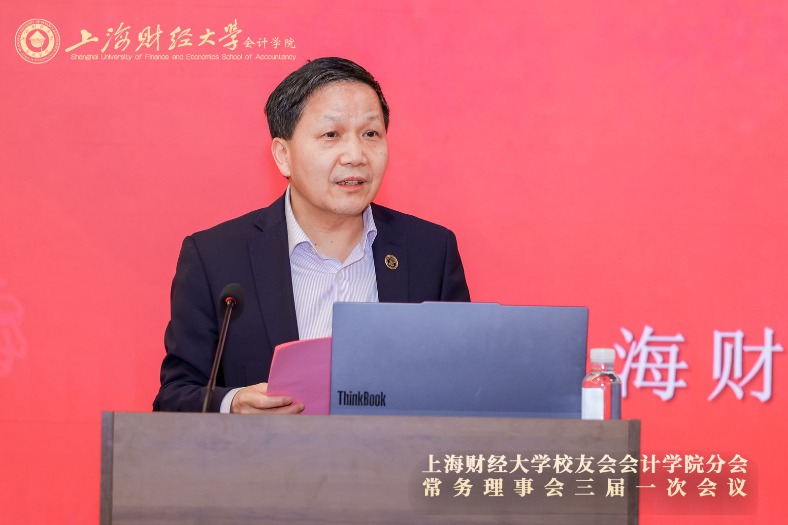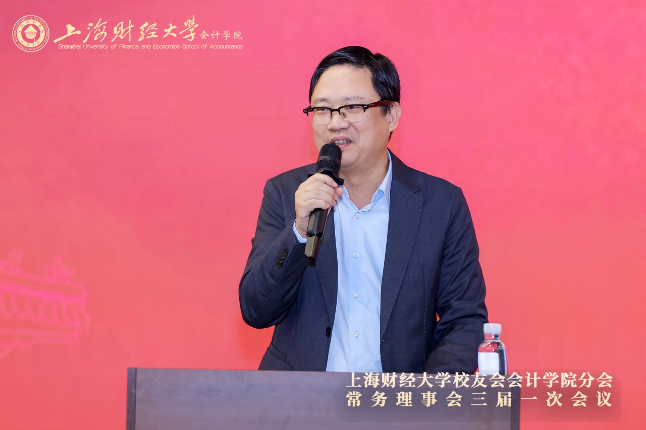 会计学院分会会长邬建辉介绍了分会工作思路和目标规划。他表示,分会肩负承前启后、继往开来的重任,将积极传续百年会院薪火,勇担时代发展使命,努力将会计学院分会打造成为上海财经大学校友会的品牌组织,为会计学院的繁荣和发展贡献智慧和力量。