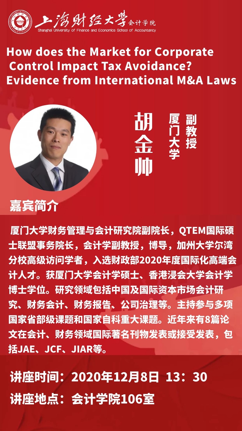 Income taxes are a major expense for profitable corporations, oftentimes 25 percent or more of pretax income. This study exploits a setting – the market for corporate control – to test competing agency-based and risk-based explanations of corporate tax planning. Exploiting the staggered enactment of M&A laws across countries that increased the threat of takeover as an exogenous shock that allows a powerful difference-in-differences design, we find a significant reduction in tax avoidance following the takeover law passage. Our analysis suggests that reduced management private benefits consumption (i.e., rent extraction), rather than managerial effort aversion or increased risk concerns associated with aggressive tax strategies, is the likely mechanism through which takeover laws impact tax avoidance. Collectively, our findings extend the literature by highlighting the role of the corporate control market in shaping cross-sectional variation in corporate tax avoidance.