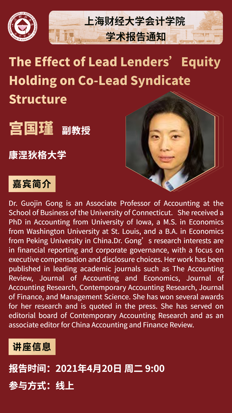 【报告主题】The Effect of Lead Lenders’Equity Holding on Co-Lead Syndicate Structure