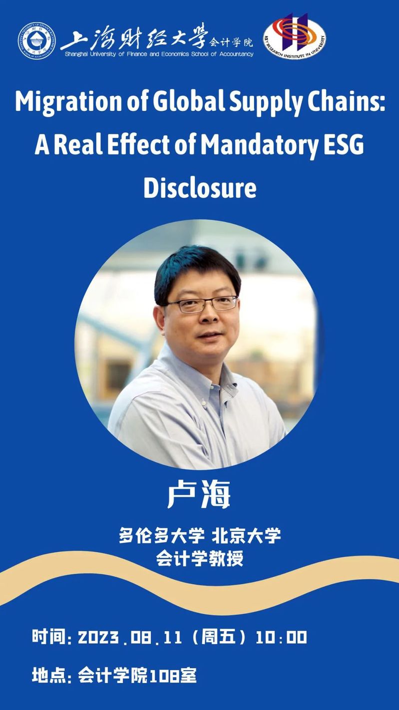 【讲座主题】Migration of Global Supply Chains: A Real Effect of Mandatory ESG Disclosure
