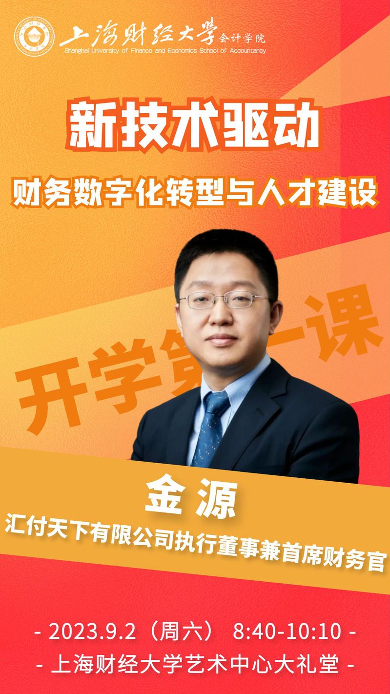 金源,正高级会计师,澳洲资深注册会计师,CIMA资深会员,上海财经大学经济学学士、香港中文大学会计学硕士。现任汇付天下有限公司执行董事兼首席财务官,上海国家会计学院智能财务研究院联席院长,财政部全国会计信息化标准化技术委员会咨询专家,中国会计学会计信息化专业委员会委员,上海市会计学会理事,上海市财务会计管理中心专家,兼任上海财经大学、上海交通大学、中央财经大学、上海大学研究生导师。研究方向为智能财务、财务管理信息系统、财务数字化转型。