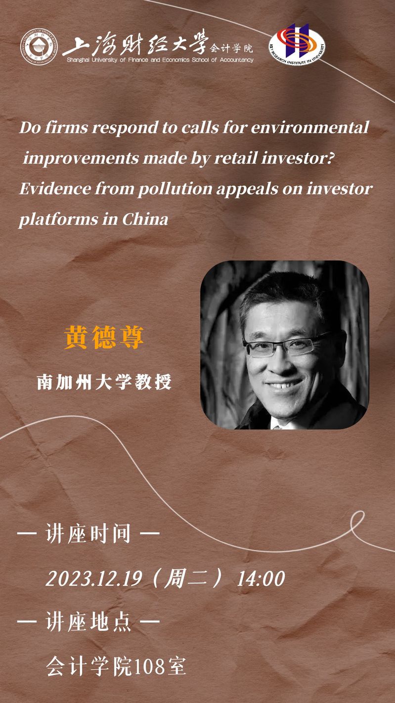 【讲座主题】Do firms respond to calls for environmental improvements made by retail investor? Evidence from pollution appeals on investor platforms in China