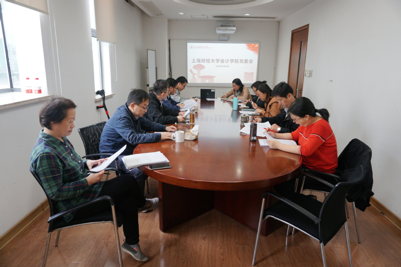10月29日,上海财经大学会计学院党委在学院322室召开党委中心组学习(扩大)会,专题学习了《深化新时代教育评价改革总体方案》,并传达中央教育工作领导小组秘书组、教育部贯彻落实《深化新时代教育评价改革总体方案》电视电话会议精神。党委副书记、院长靳庆鲁,副院长朱凯、曾庆生,党委副书记黄莎等同志参加了学习。会计学院党委书记周国良主持学习会,并就进一步深化学院教育评价改革有关工作进行了研究部署。