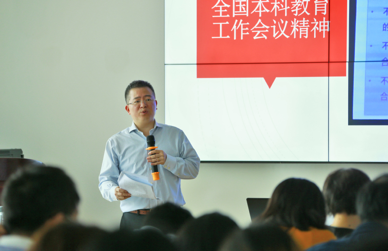 此外,李老师还为与会人员解读了全国本科教育工作会议相关内容,详述了“三个不合格”和“八个首先”的会议精神,并要求全体教师坚定政治立场,以更高的历史站位、更广的国际视野,围绕培养什么人、怎样培养人、为谁培养人这一根本问题,坚定立德树人,并以此来引领自己现在及将来的工作方向。