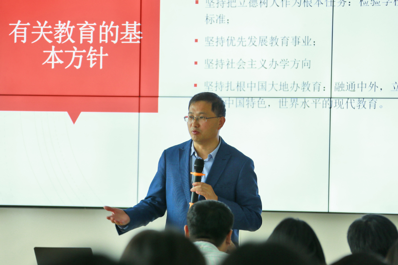 本次专题学习围绕全国教育大会精神和内容展开。李老师表示,本次大会是在习近平新时代中国特色社会主义思想指引下召开的第一次教育大会,是我国教育发展史上新的里程碑,对学校和学院未来的工作开展提出了新要求,指明了新方向。