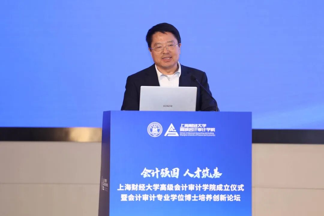 支晓强首先高度肯定上海财经大学在会计专业学位研究生教育二十载深耕所取得的卓越成就,同时对专业学位博士培养提出殷切期许。他表示上海财经大学的学术型博士培养在学术界具有很大影响力,希望学校以高级会计审计学院为新的起点,紧扣国家重大战略需求,勇担全国首批试点单位使命,探索中国自主人才培养的新路径,开拓会计审计高端人才培养的新范式,将专业学位博士培养同步打造为具有全国引领力的品牌,为全国专业学位博士教育改革提供示范性经验。