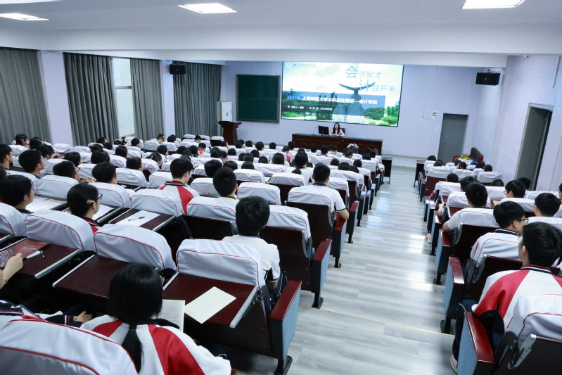 会上,上海财经大学教务处副处长江晓东教授以"UNIVERSITY"为切入点,通过拆解这个英文单词的深刻内涵,向在场师生生动阐释了上海财经大学“立足中国、面向世界”的办学格局和“多元融合、追求卓越”的人才培养理念。他勉励同学们要志存高远,勇于攀登,在更高层次的教育平台上实现人生价值。