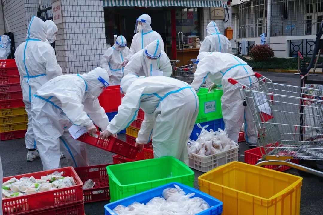 与学生志愿者做好对接,送餐到楼。并积极协同片区其他团队共同完成1700余份基本生活物资发放。晚上接到通知继续根据最新情况,再次调整配餐方案。