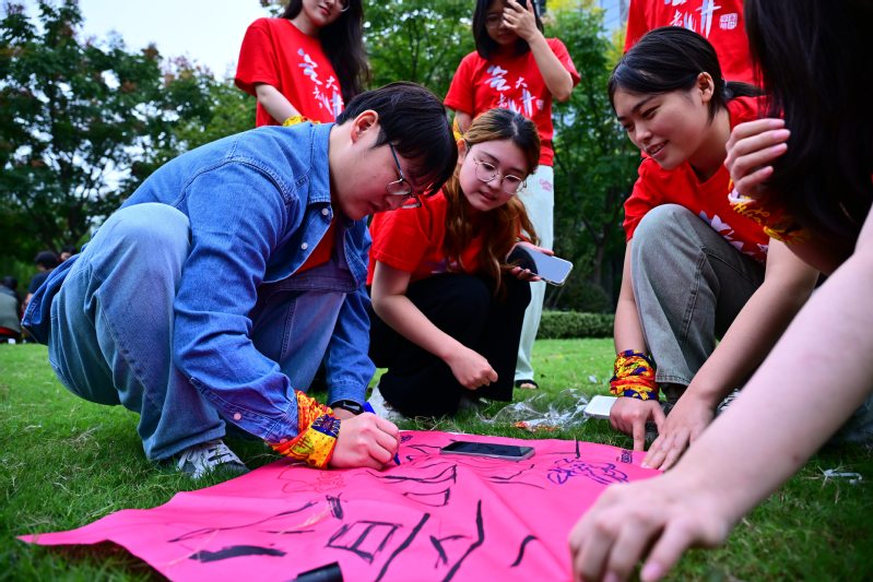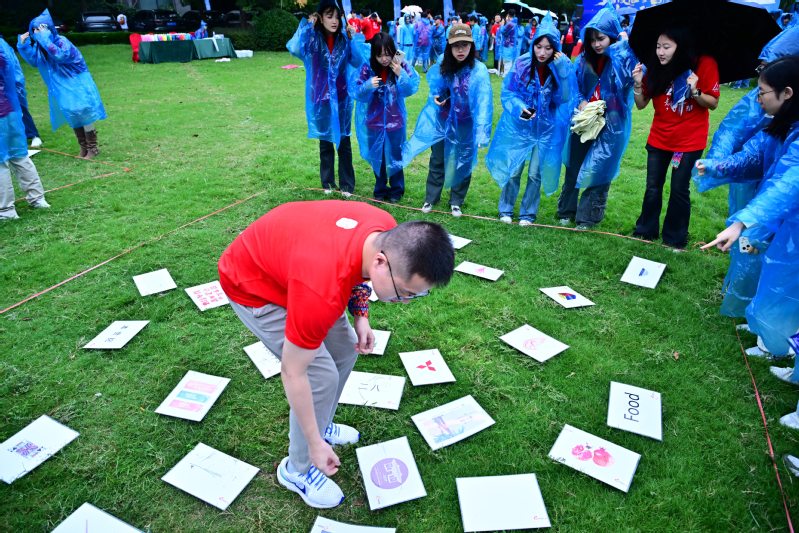 开营仪式后,活动以一场兼具脑力考验与肢体协调的“说到做到”游戏火热开启,同学们需同步调动口、脑、手、脚,完成一系列连贯动作。大家在轻松愉悦的氛围中快速熟悉彼此,悄然凝聚起团队默契。游戏过后,一场充满创意的团队组建环节随即展开。有人化身创意总监,为队伍构思独特名称;有人担当文案达人,撰写铿锵有力的口号;还有人拿起画笔,将团队理念融入色彩鲜明的队旗设计中。最终,十四支风格迥异、创意十足的队伍应运而生。每一面队旗都承载着团队的共同信念,充分展现了上财学子的创新活力。随后,“猜猜我是谁” 等互动小游戏接续进行,同学们在充满乐趣的问答互动中加深了相互了解,团队凝聚力在欢声笑语中持续升温。