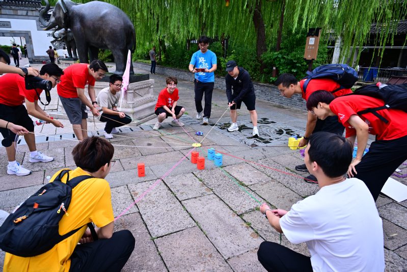 颁奖仪式结束后,拓展活动的最后一项重磅任务“寻迹南浔古镇”正式启动。南浔古镇作为江南水乡的经典代表,河道纵横,古桥林立,充满了独特的历史韵味。同学们以团队为单位,穿梭在古色古香的街巷中,一边探寻古镇的文化遗迹,完成趣味打卡任务,一边欣赏水乡的秀丽风光,感受江南的人文气息。在任务完成过程中,大家再次展现出强大的团队协作能力:有人负责规划路线,有人负责记录线索,在欢声笑语中高效完成了各项挑战。这场寻迹之旅不仅让同学们领略了江南水乡的独特魅力,更让大家深刻体会到协同作战的重要性,只有心往一处想、劲往一处使,才能在挑战中稳步前行。