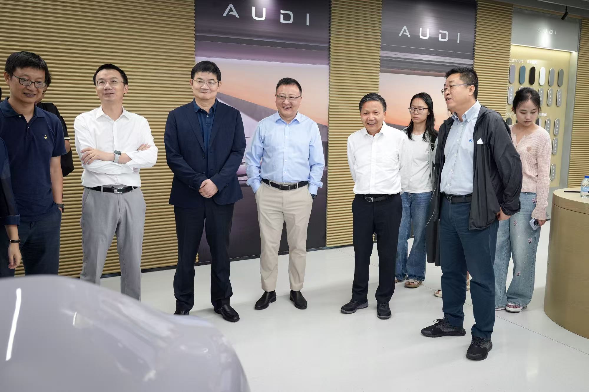 在上汽领导们的陪同下,师生一行首先来到2025年8月正式投入使用的AUDI智造基地,参观基地的全自动化总装车间,让师生们亲眼见证了整车组装的完整流程。高度自动化的生产线、精准高效的机械臂操作、井然有序的生产节拍,无不展现出现代制造业的科技魅力,现代化的生产场景让师生们对制造业的精细化管理有了更为深刻的理解。随后,师生们移步企业历史长廊,深入了解上汽大众悠久的发展历程。从上海记忆里的经典桑塔纳到现代化的展车,一部中国汽车工业的发展史栩栩如生地呈现在大家面前。历史与未来的鲜明对比,让师生们感受到了中国制造业的厚重积淀与创新活力。