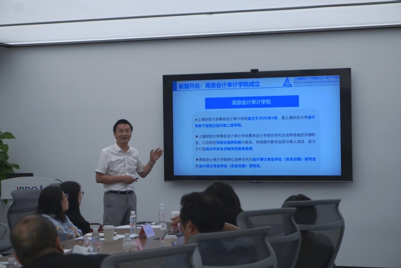 曾庆生副院长介绍高级会计审计学院发展与人才培养情况,他提到学院专注于非全日制会计专博与专硕教育,以政产学研协同创新为鲜明特色,其中以培养高层次复合型人才为目标的专博、专硕项目,正致力于打造世界一流会计教育高地,打通学界与政界、业界的紧密联系,为会计行业输送高质量人才。