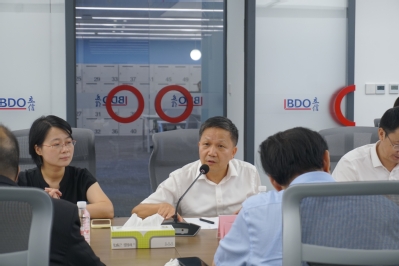 2025年9月25日下午,上海财经大学高级会计审计学院院长陈信元,会计学院、高级会计审计学院副院长曾庆生,会计学院副院长周波带领30名师生代表赴立信会计师事务所(特殊普通合伙)(以下简称“立信会计师事务所”)开展调研交流。立信会计师事务所党委副书记、纪委书记、执行总裁杨志国,合伙人、技术标准部负责人孙晓悦,合伙人郑晓东、蔡敏,人力资源部经理陶维娜出席座谈。
