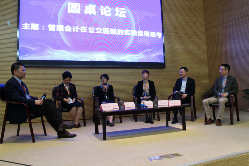 上海交通大学医学院附属新华医院副院长、上海市领军人才程明教授担任圆桌论坛主持人。上海交通大学医学院附属新华医院纪委副书记、财务处长、国家卫生健康委卫生健康行业经济管理领军人才倪君文,复旦大学附属华山医院总会计师、财政部会计领军人才周海平,上海交通大学医学院附属瑞金医院财务处负责人兼党支部书记李雪辉,上海交通大学医学院附属仁济医院财务处处长、财政部全国会计领军人才高一红,上海市(复旦大学附属)公共卫生临床中心总会计师、国家卫生健康行业经济管理领军人才陈志军等围绕“管理会计在公立医院的实践运用思考”这一主题各抒己见,分别讨论成本,预算,绩效等管理会计工具在公立医院的实践做法。