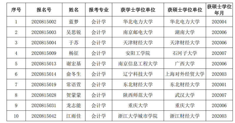 本着公平、公正、公开的原则,会计学院2020 年“申请考核”制博士研究生招生(提前批)资格审核组专家根据申请人提交的材料,经过全面审查和严格筛选,最终确定以下10名同学通过初审,进入综合考核: