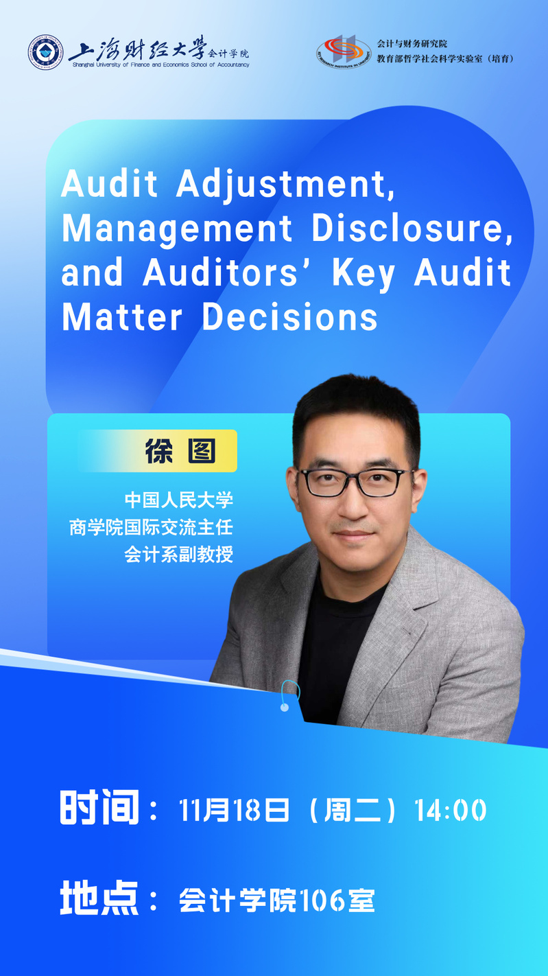 【讲座主题】Audit Adjustment, Management Disclosure, and Auditors’ Key Audit Matter Decisions